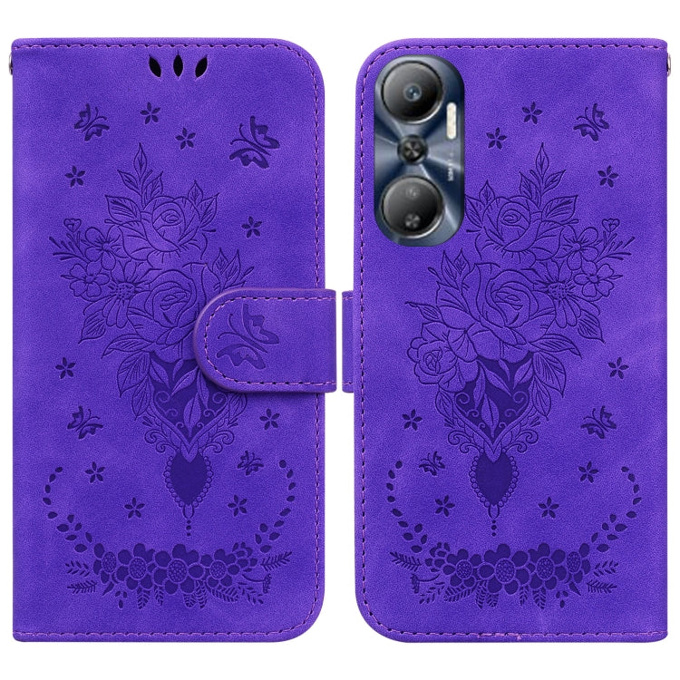 Estuche para teléfono Infinix Hot 20 Butterfly Rose de cuero en relieve (Púrpura)