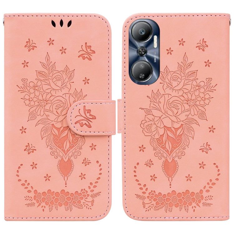 Estuche para Teléfono Infinix Hot 20 Butterfly Rose de Cuero en Relieve (Rosa)