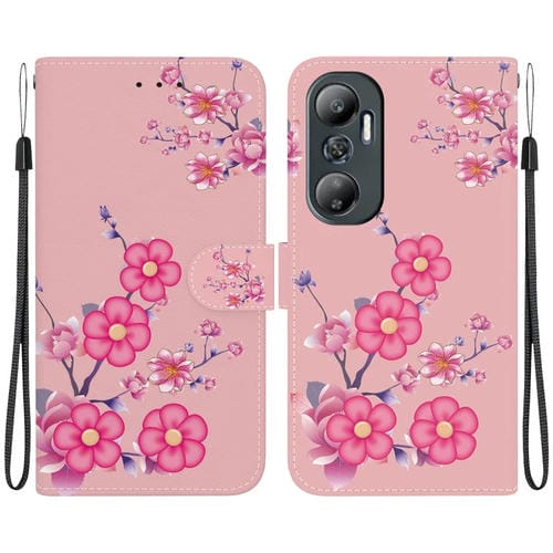 Funda de Cuero para Infinix Hot 20 con Dibujo Coloreado y Textura de Cristal (Flores de Cerezo)