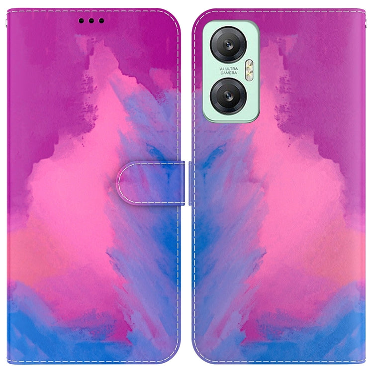 Funda de Cuero para Infinix Hot 20 con Patrón de Acuarela (Púrpura Rojo)