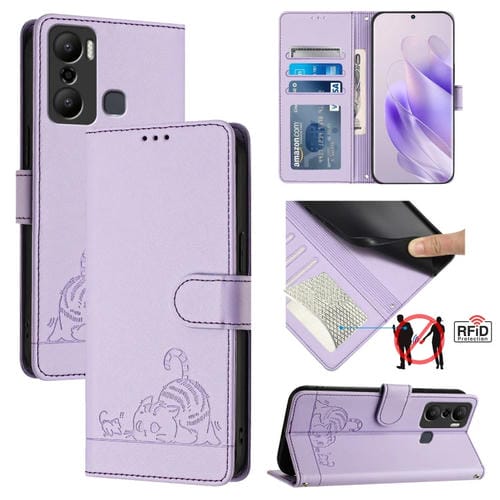 Funda para Teléfono Infinix Hot 20 Play Cuero Rfid con Patrón en Relieve y Cordón (Púrpura)