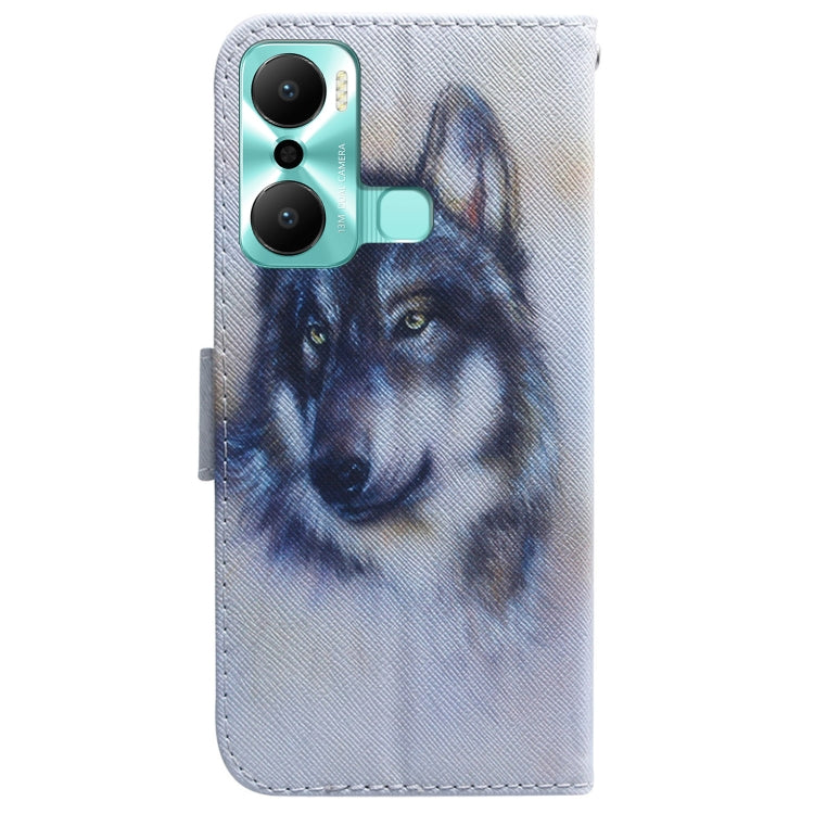 Estuche de Cuero para Infinix Hot 20 Play con Tapa y Dibujo Coloreado (Lobo Blanco)