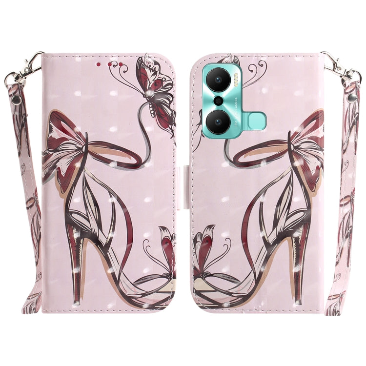 Funda de Cuero para Infinix Hot 20 Play con Tapa y Patrón 3D (Tacón Alto de Mariposa)