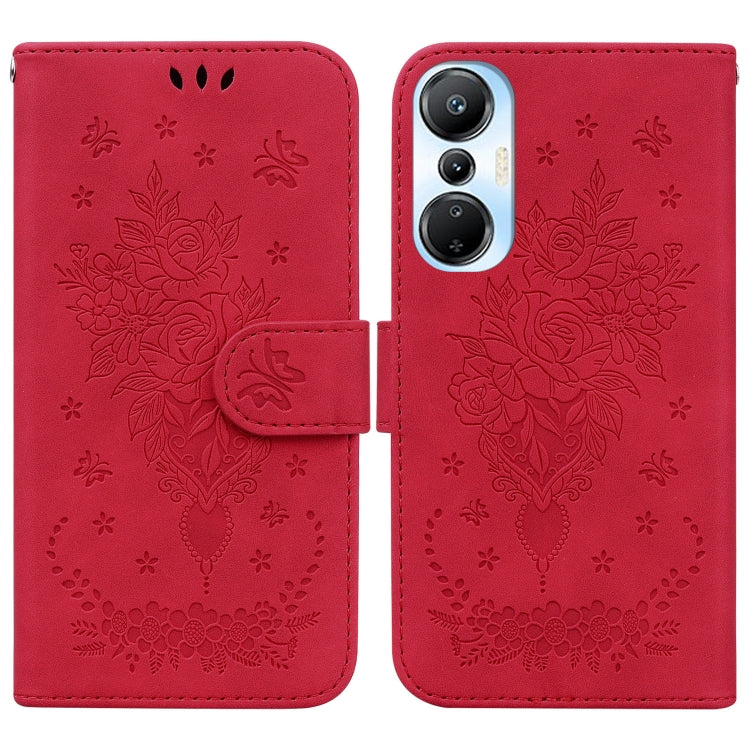Estuche para teléfono Infinix Hot 20S Butterfly Rose cuero en relieve (Rojo)