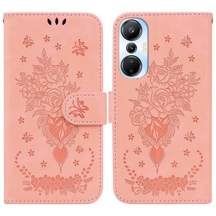 Estuche para Teléfono Infinix Hot 20S Butterfly Rose Cuero En Relieve (Rosa)