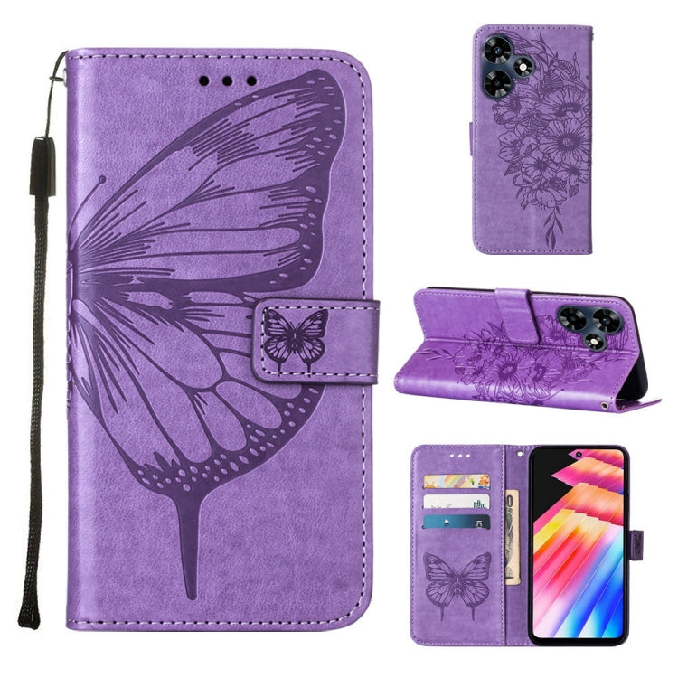 Estuche para Teléfono Infinix Hot 30 4G X6831 Cuero con Mariposa En Relieve (Púrpura Claro)