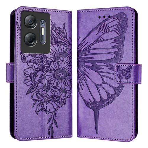 Funda de Cuero para Infinix Hot 30 5G con Mariposa en Relieve (Púrpura Claro)