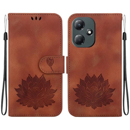 Funda para Teléfono Infinix Hot 30 Play X6835 de Cuero con Relieve de Loto (Marrón)