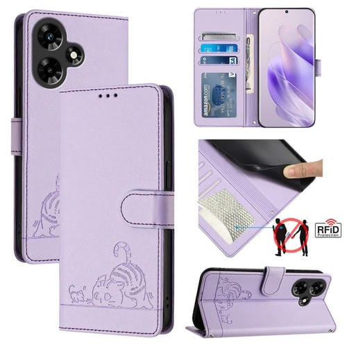 Estuche para Teléfono Infinix Hot 30I de Cuero RFID con Patrón en Relieve y Cordón (Púrpura)