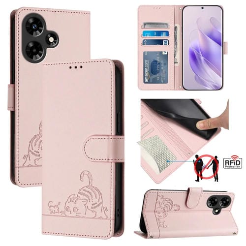 Estuche para Teléfono Infinix Hot 30I Cuero Rfid con Patrón En Relieve y Cordón (Rosa)