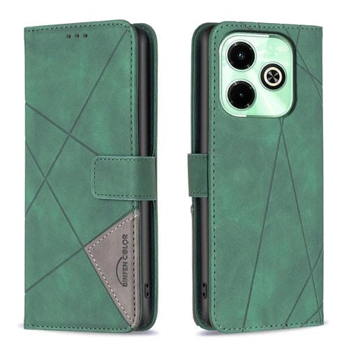 Funda de Cuero para Infinix Hot 40/40 Pro con Textura de Rombo y Hebilla Magnética (Verde)