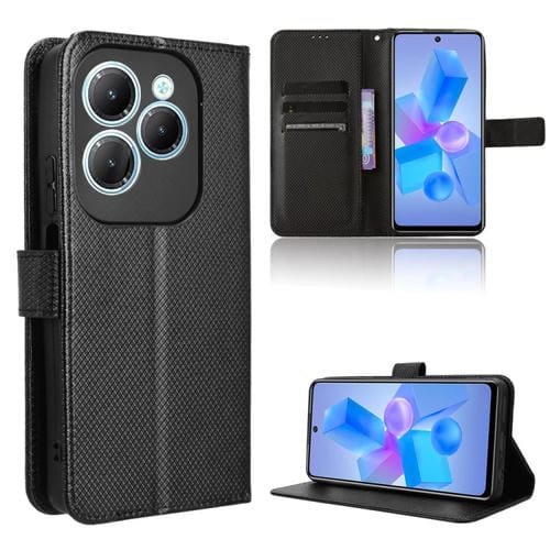 Funda de Cuero para Infinix Hot 40 4G con Textura de Diamante (Negro)