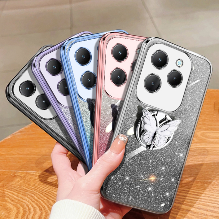 Funda para Infinix Hot 40 TPU con Soporte Mariposa y Brillo Degradado (Púrpura)