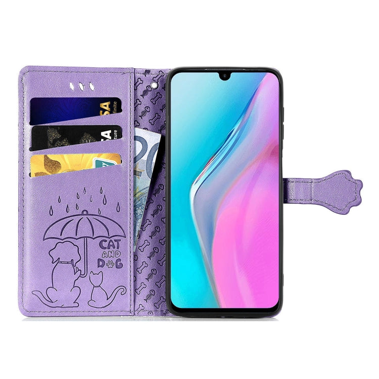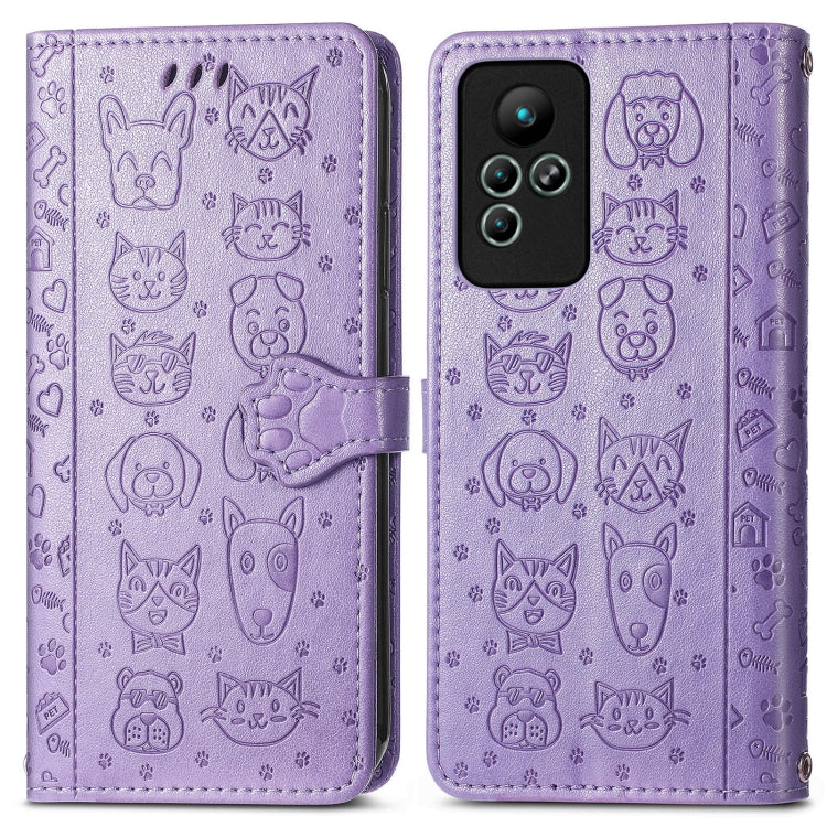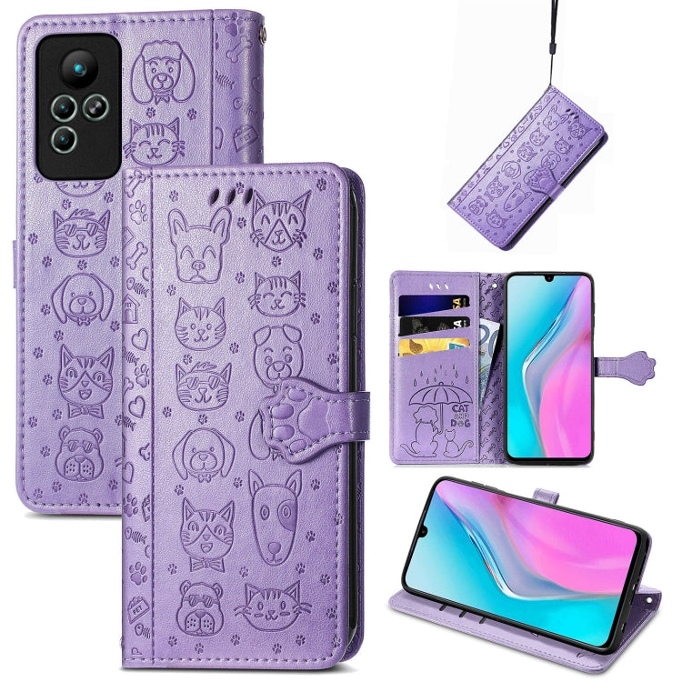 Estuche de Cuero En Relieve para Infinix Note 11 Cute Cat And Dog (Púrpura)
