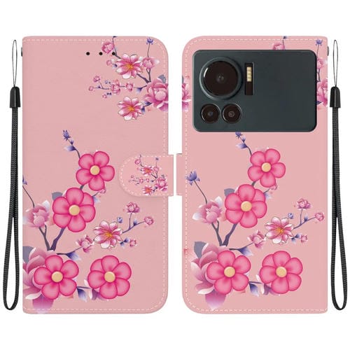 Funda de Cuero para Infinix Note 12 con Dibujo Coloreado y Textura de Cristal (Flores de Cerezo)