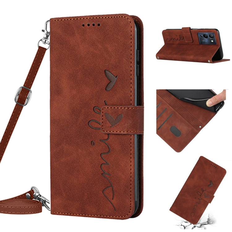 Funda de Cuero para Infinix Note 12 G96 con Cordón y Diseño Heart Pattern (Marrón)