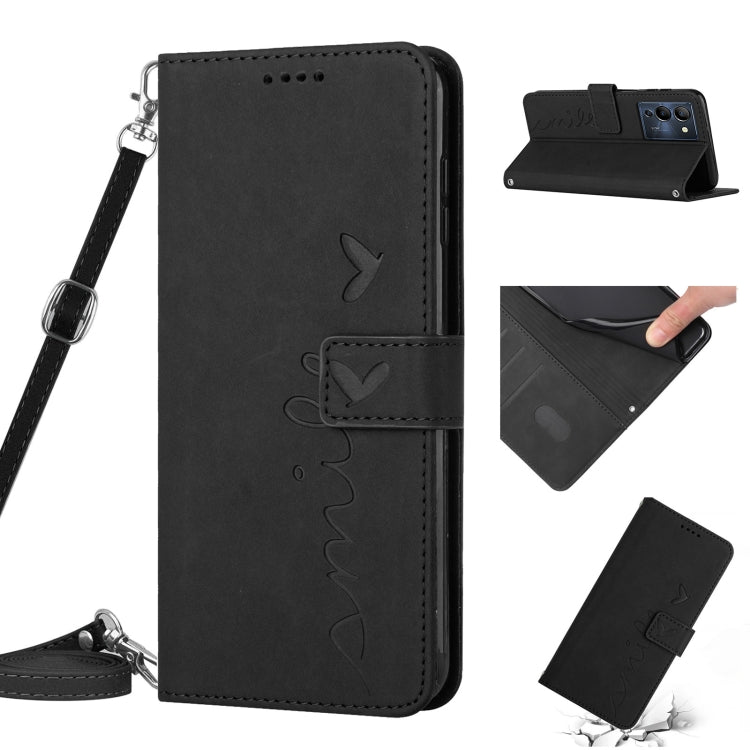 Funda de Cuero para Infinix Note 12 G96 con Cordón y Diseño Heart Pattern (Negro)