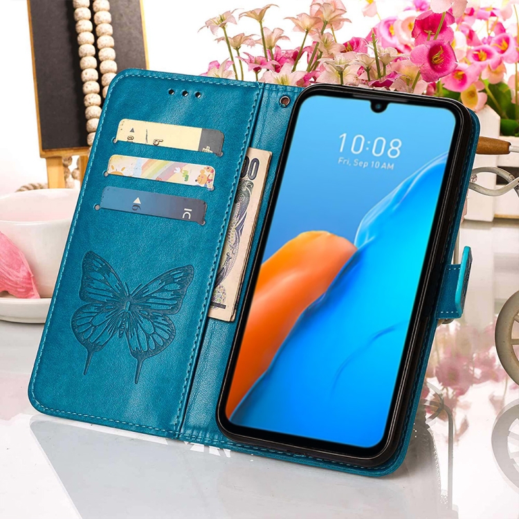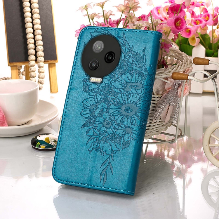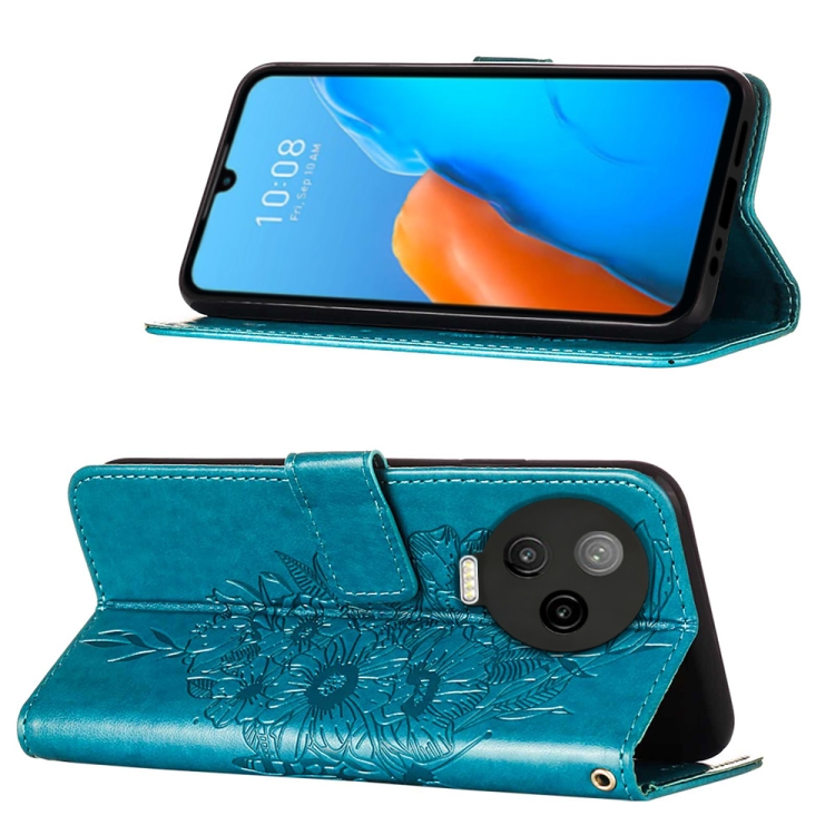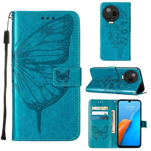 Estuche de Cuero para Infinix Note 12 Pro 4G con Tapa de Mariposa En Relieve (Azul)