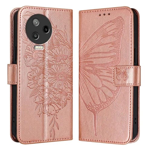 Funda para Infinix Note 12 Pro 4G y Note 12 2023 de Cuero con Mariposa en Relieve (Oro Rosa)