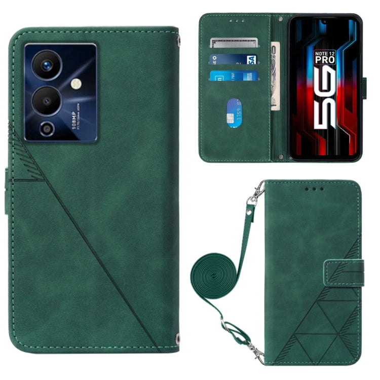 Funda de Cuero Crossbody 3D para Infinix Note 12 Pro 5G con Tapa en Relieve (Verde Oscuro)