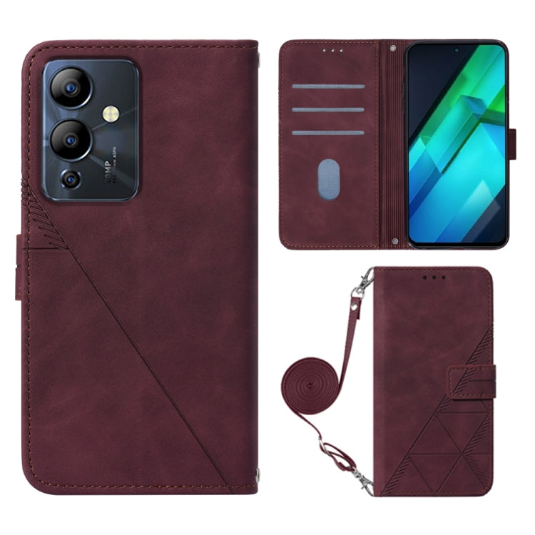 Funda de Cuero con Tapa en Relieve 3D Crossbody para Infinix Note 12I 2023 / G85 (Rojo Vino)