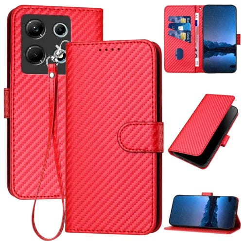 Funda de Cuero para Infinix Note 30 4G Yx0070 con Hebilla de Fibra de Carbono y Cordón (Rojo)