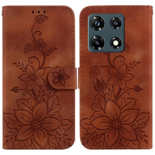 Funda de Cuero en Relieve para Infinix Note 30 Pro Lily (Marrón)