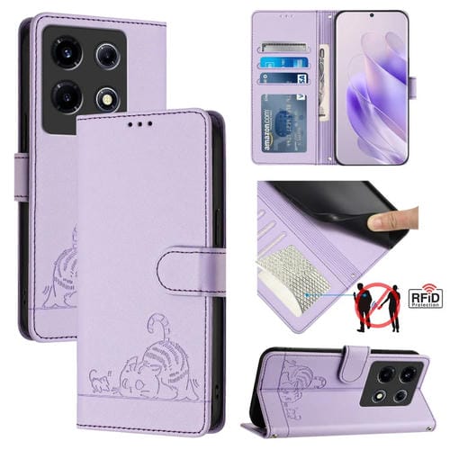Estuche para Teléfono Infinix Note 30 Vip Cat Rat Cuero RFID con Patrón en Relieve y Cordón (Púrpura)