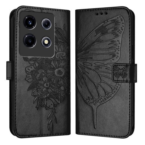 Funda de Cuero para Infinix Note 30 Vip con Mariposa en Relieve (Negro)