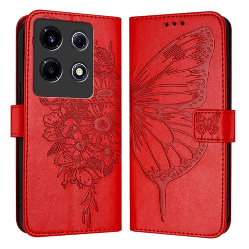 Funda de Cuero para Infinix Note 30 Vip con Mariposa en Relieve (Rojo)