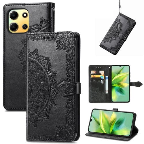Funda para Teléfono Infinix Note 30I Cuero Relieve Flor de Mandala (Negro)