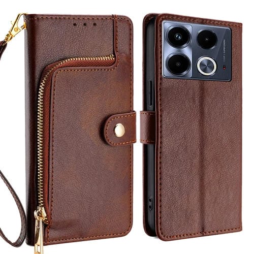 Funda de Cuero para Infinix Note 40 4G con Bolsa y Cremallera (Marrón)