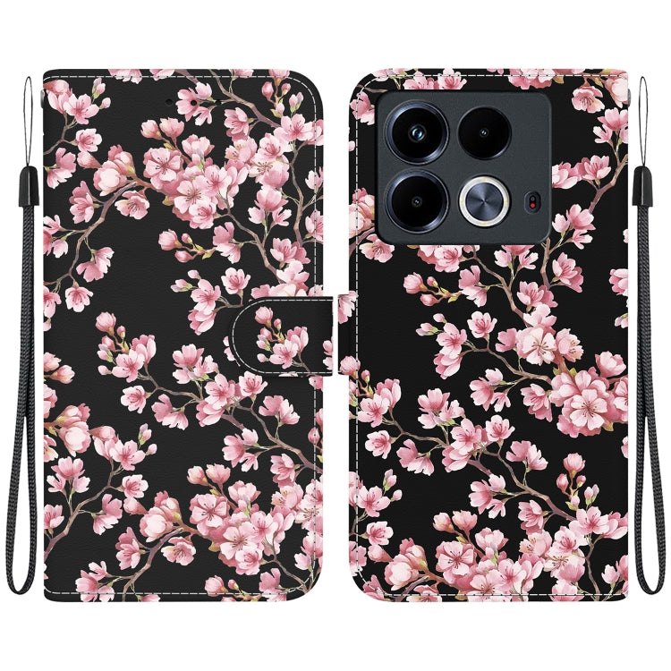 Funda de Cuero para Infinix Note 40 4G con Dibujo Coloreado y Textura de Cristal (Flor de Ciruelo)