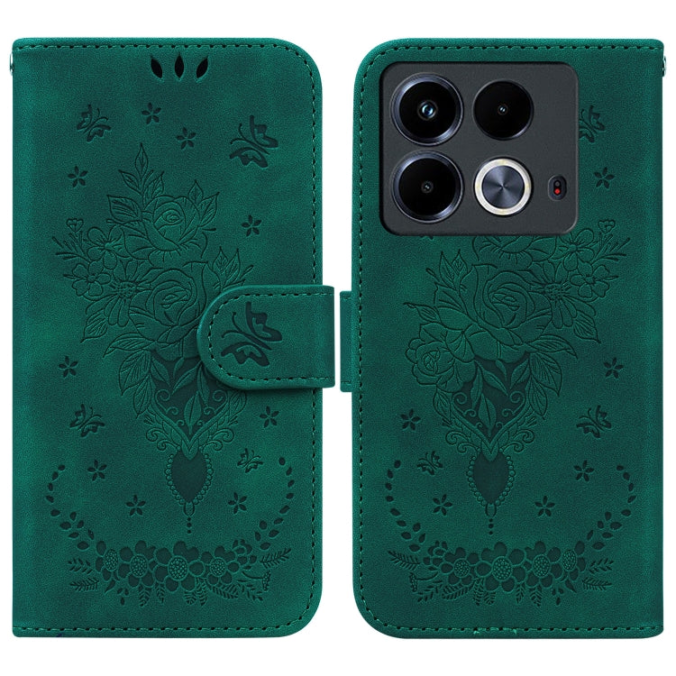 Funda para Infinix Note 40 4G de Cuero con Relieve Mariposa y Rosa (Verde)