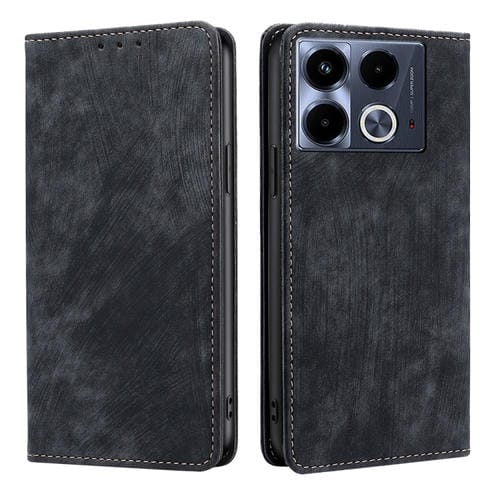Funda de Cuero Magnética para Infinix Note 40 4G con Rfid y Cepillo Antirrobo (Negro)