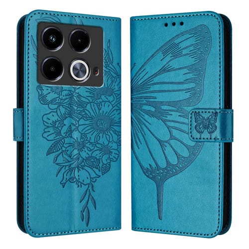 Funda de Cuero para Infinix Note 40 con Mariposa en Relieve (Azul)