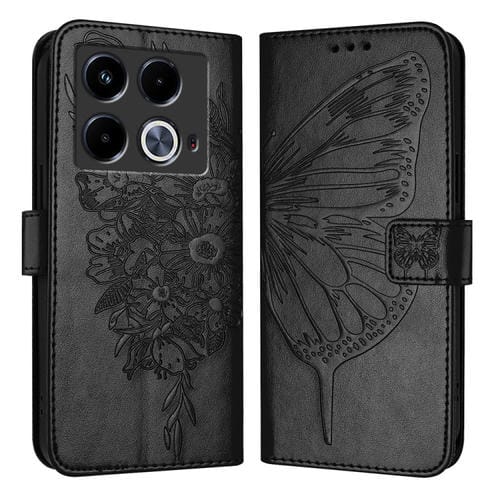 Funda de Cuero para Infinix Note 40 con Mariposa en Relieve (Negro)