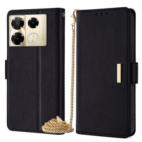 Funda de Cuero con Cadena Cruzada para Infinix Note 40 Pro 4G (Negro)