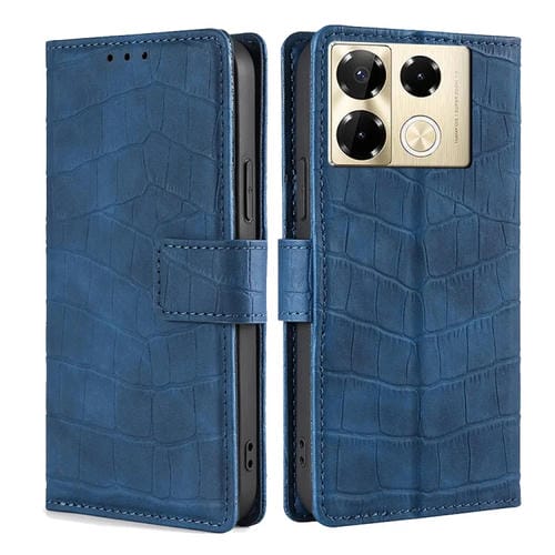 Funda de Cuero para Infinix Note 40 Pro 4G con Cierre Magnético de Cocodrilo (Azul)