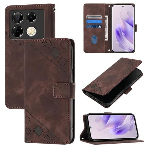 Funda de Cuero para Infinix Note 40 Pro 5G Skin Feel En Relieve (Marrón)
