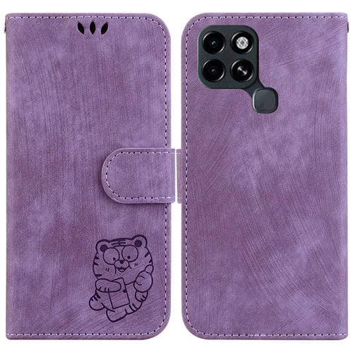 Funda de Cuero para Infinix Smart 6 con Relieve Little Tiger (Púrpura)