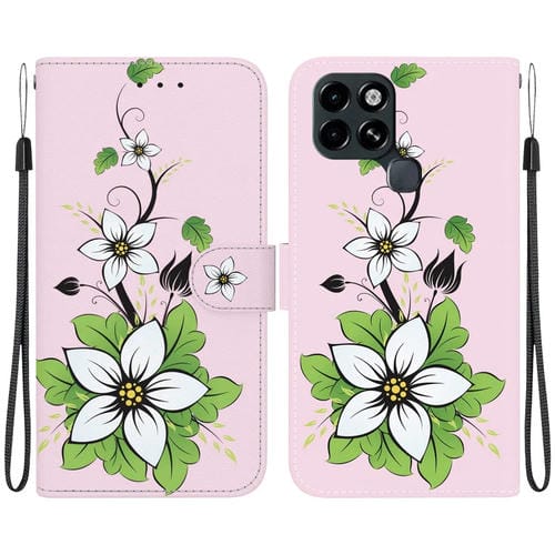 Funda de Cuero para Infinix Smart 6 con Dibujo Coloreado y Textura de Cristal (Lirio)