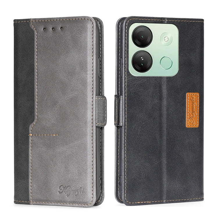 Funda de Cuero para Infinix Smart 7 HD con Hebilla Lateral y Contraste (Negro + Gris)