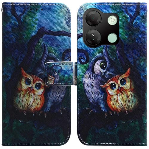 Funda de Cuero con Tapa para Infinix Smart 7 HD con Dibujo Búho de Pintura al Óleo