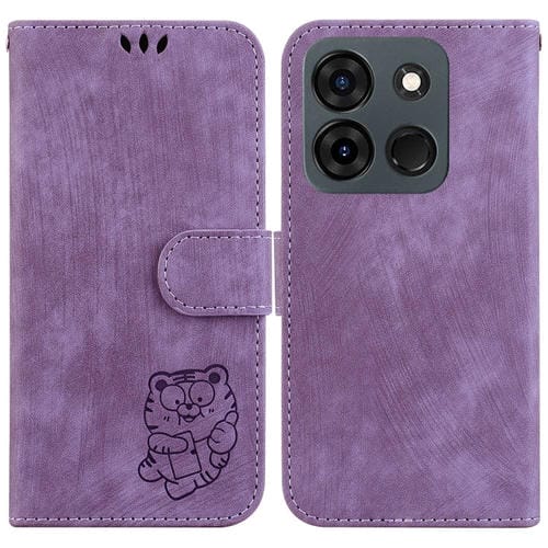 Funda para Teléfono Infinix Smart 7 India y 7 Plus Cuero con Relieve Little Tiger (Púrpura)