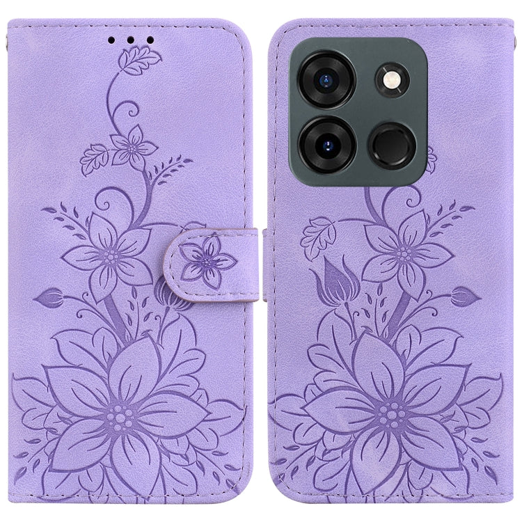 Estuche para Infinix Smart 7 India y Smart 7 Plus de Cuero con Relieve de Lirio (Púrpura)