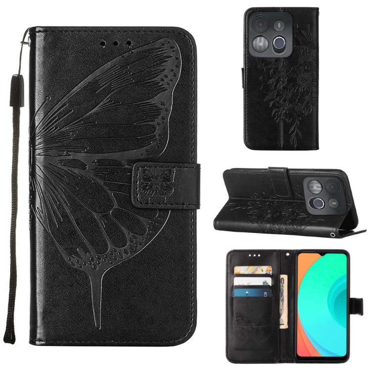Estuche para Teléfono Infinix Smart 7 X6515 Cuero con Tapa de Mariposa en Relieve (Negro)