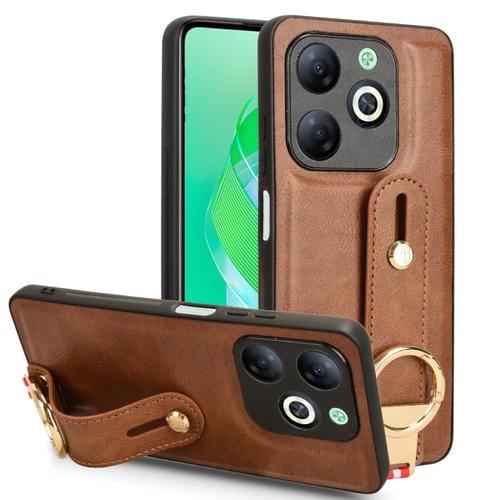 Funda Trasera de Cuero para Infinix Smart 8 con Pulsera (Marrón)