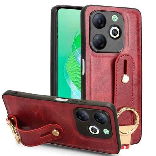 Funda Trasera de Cuero para Infinix Smart 8 con Pulsera (Rojo)
