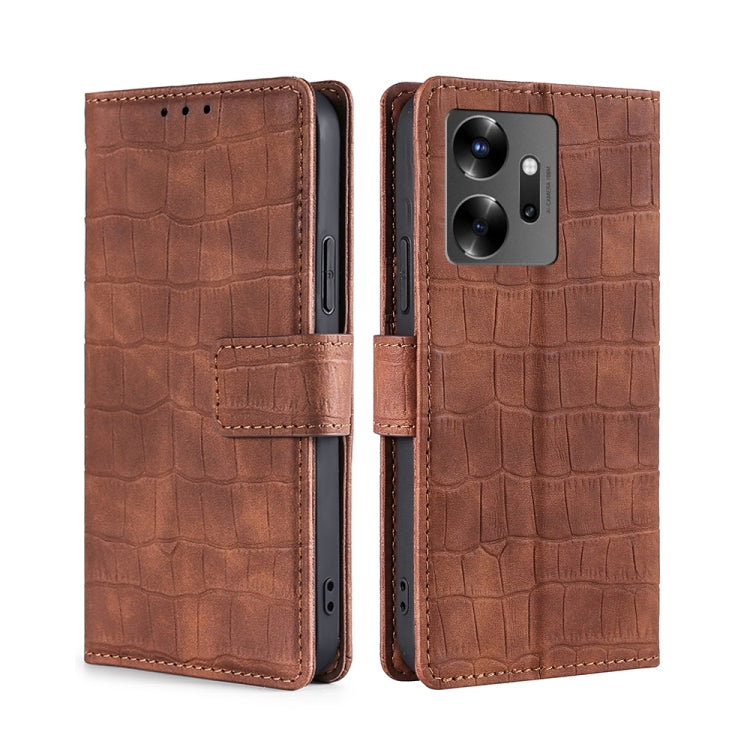 Funda de Cuero para Infinix Zero 20 Skin Feel Cocodrilo con Cierre Magnético (Marrón)